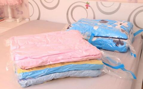 真空压缩袋利用真空密封形成内外大气压差来达成被子压缩减少存放空间,但并不适用于全部的被子。尤其是对于需要通风保存,避免重压的蚕丝被、羽绒被是绝对不可以使用的,哪怕是薄薄的夏凉被也不能进行挤压,不然,明年夏天你拿出来的被子就只能报废了。